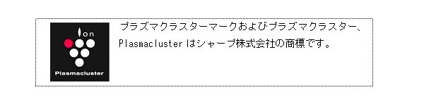 ※2 試験機関:広島大学大学院 先端物質科学研究科 試験方法:掃除をしない実際の居住空間(約8畳)での浮遊ダニのアレル物質の作用をELISA法で測定。結果よりシャープ株式会社にて換算し、平均値と残存率を算出。(プラズマクラスターイオン濃度:3,000個/cm3) ※3 試験機関:(財)日本紡績検査協会 試験方法:タバコのニオイ成分を染み込ませた布片の脱臭効果を6段階臭気強度表示法にて評価(プラズマクラスターイオン濃度:20,000個/cm3)。約60分で気にならないレベルまで脱臭* *ニオイの種類・強さ・対象物の素材によって、ニオイ除去効果は異なります。 ※4 試験機関:(財)石川県予防医学協会 試験方法:8畳相当の実験室にプラズマクラスターイオンを放出し、浮遊カビ菌をエアーサンプラーにて測定(プラズマクラスターイオン濃度:3,000個/cm3)。約195分で除去率99.0%。 ※5 約10畳(約40m3)の試験空間での約38分後の効果であり、実使用空間での実証結果ではありません。 試験機関:米国 ハーバード大学公衆衛生大学院 名誉教授メルビン・ファースト博士 試験方法:約10畳の試験空間に、ある1種の菌を浮遊させ、プラズマクラスターイオンを放出し、その後、試験空間内の菌を回収し、空気中の菌除去率を算出。(プラズマクラスターイオン濃度:25,000個/cm3)。 試験結果:約38分で99%抑制。 ※6 1m3 密閉容器での試験による約10分後の効果であり、実使用空間での実証結果ではありません。 試験機関:イギリス レトロスクリーン・バイロロジー社 試験方法:1m3ボックス内に、ある1種のウイルスを浮遊させ、プラズマクラスターイオンを放出し、その後、1m3ボックス内のウイルスを回収し、空気中のウイルス除去率を測定。測定結果プラズマクラスターイオン濃度:7,000個/cm3の場合、約10分で除去率99.0%。 ※7 試験機関:シャープ株式会社調べ 試験方法:1m3の密閉容器内に約4. 0kVに帯電させたアクリル板を置き、プラズマクラスターイオンを放出させたときの静電気量を測定。(プラズマクラスターイオン濃度:25,000個/cm3) |