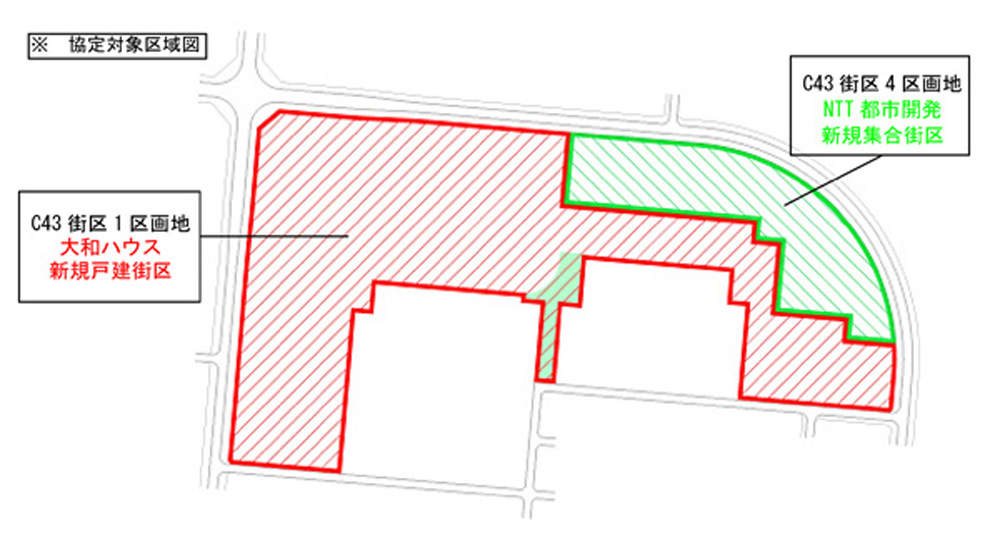 【協定対象區域】 研究學園都市計畫事業葛城一體型特定土地區畫整理事業に存するC43街區1畫地及び4畫地(つくば環境スタイル“SMILe”におけるモデル街區エリア)