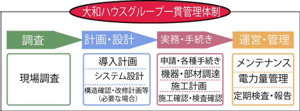 大和エネルギーは、大和ハウス工業が所有する土地にメガソーラーを建設し、発電事業者として発電した全電力を関西電力株式會社へ売電するとともに、メガソーラーの運営管理を行います。