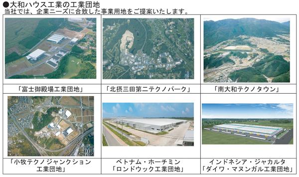當(dāng)社の建築事業(yè)は、創(chuàng)業(yè)以來、製造施設(shè)、物流施設(shè)、醫(yī)療?介護(hù)施設(shè)、オフィスなど、さまざまな事業(yè)用建築物を手がけてきました。 2007年4月、靜岡県御殿場市において、大和ハウスグループの株式會(huì)社東富士と共同で、「富士御殿場工業(yè)団地」を開発。2011年1月には、兵庫県三田市において、當(dāng)社最大の産業(yè)団地「北摂三田第二テクノパーク」を開発し、造成工事と企業(yè)誘致活動(dòng)を進(jìn)めてきました。 そしてこのたび、當(dāng)社は、工業(yè)化建築のパイオニアとしての技術(shù)力はもとより、製造施設(shè)、物流施設(shè)などの施工実績によって蓄積されたノウハウと情報(bào)によるコンサルティング力、また、大規(guī)模団地の分譲などで培われたデベロッパーとしての企業(yè)力を活かし、中國地方では當(dāng)社初となる工業(yè)団地「防府テクノタウン」の開発を行うこととなりました。 今後、當(dāng)社グループが保有する経営資源(建築物の調(diào)査、設(shè)計(jì)、施工、建物の管理?運(yùn)営に関するノウハウ)を組み合わせ、當(dāng)工業(yè)団地への企業(yè)誘致活動(dòng)を積極的に行っていきます。