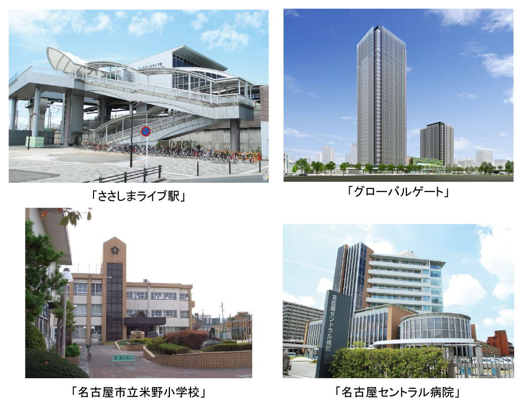 1.英語対応可能なコンシェルジュを設けた東海エリア最高級の大型複合賃貸マンション 2027年にリニア中央新幹線(東京~名古屋間)が開業(予定)することを見込んで、現在名古屋駅周辺は再開発が進んでいます。今回竣工した「ロイヤルパークスERささしま」は、「JR名古屋駅」南側の大型再開発エリア「ささしまライブ24地區」內にある大型複合賃貸マンションで、名古屋臨海高速鉄道あおなみ線「ささしまライブ駅」まで徒歩2分、JR東海道本線「名古屋駅」まで徒歩16分と、通勤や生活に便利な好アクセスの場所にあり、自動車に依存することなく生活できます。 周辺には、生活利便施設としてシネマコンプレックスが入居する複合商業施設「マーケットスクエアささしま」(徒歩4分)をはじめ、スーパーマーケット「マックスバリュ太閤店」(徒歩11分)、複合施設「グローバルゲート」(建設中?徒歩1分)があり、中心街ならではの賑わいとお灑落な雰囲気を身近に感じながら生活できます。 また、徒歩圏內に「名古屋市立米野小學校」(徒歩9分)、「名古屋市立黃金中學校」(徒歩17分)、「愛知大學名古屋キャンパス」(徒歩2分)、「名古屋セントラル病院」(徒歩11分)と、教育施設?醫療施設も充実しています。