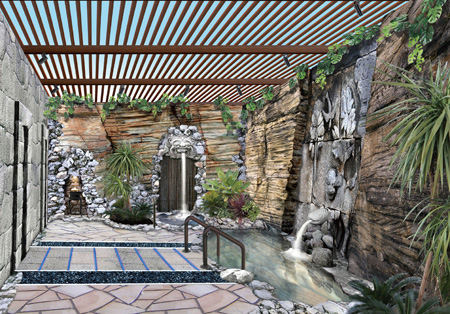 (2)入居者専用天然溫泉&フィットネスルーム 南棟1階には、地下約800mから汲み上げる「ささしま天然溫泉」を設置。露天風呂とサウナ、フィットネスルームも併設しました。 ※源泉を加溫および循環ろ過しています。