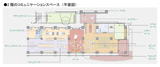 4.東海エリア最大級 130室のシェアルームを設置 「ロイヤルパークスERささしま」は、學生や単身者向けに、南棟2階~5階に東海エリア最大級の130室を誇るシェアルーム「D-room Shareささしま」を設けました。2階には、シェアルームの中心となる共用のコミュニケーションスペース(約530㎡)として大型のリビングやダイニング以外にも、キッチンスタジオやシアタールーム、フットサル?バスケットボール等が行えるアクティビティコート、読書や勉強ができるライブラリー等を設けました。各室においても、エアコンやベッド、カーテン、機、椅子、クローゼット等も標準搭載することで、快適な生活をサポートします。