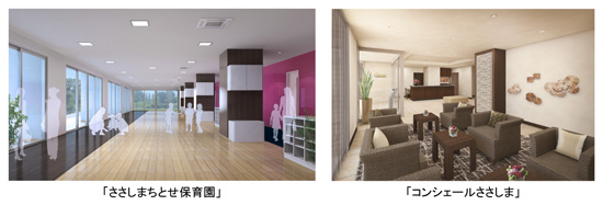 5.認可保育園や有料老人ホーム、コンビニエンスストア等が入居する大型複合賃貸マンション 「ロイヤルパークスERささしま」の南棟1階には、社會福祉法人ちとせ交友會が運営する認可保育園「ささしまちとせ保育園」が入居します。また、西棟の下層部には、株式會社リエイが運営する有料老人ホーム「コンシェールささしま」(66室)が入居します。さらに、東棟1階には、コンビニエンスストアも入居するため、急な生活用品なども購入できます。