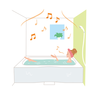 2.お風呂場で音楽を楽しめるアイテム「D-room Music」 浴室に設置する「D-room Music(ディールーム ミュージック)」は、入浴中にお気に入りの音楽を手軽に楽しむことができるアイテムです。 洗面化粧臺のキャビネットに設置したアンプに、Bluetooth機能(※5)を持つスマートフォンやタブレットを接続させることで、浴室天井に埋め込んだ振動スピーカー(※6)から連動して音楽が流れてきます。天井から降り注ぐ音楽は、體を包み込むように流れ、大好きな曲が浴室中に広がり、リラックスして音楽を楽しむことができます。 ※5.Bluetooth機能がない音楽機器でも、アンプに直接ケーブルでつなぐことで音楽を流すことができます。 ※6.音を壁?天井などに振動させるスピーカーのこと。