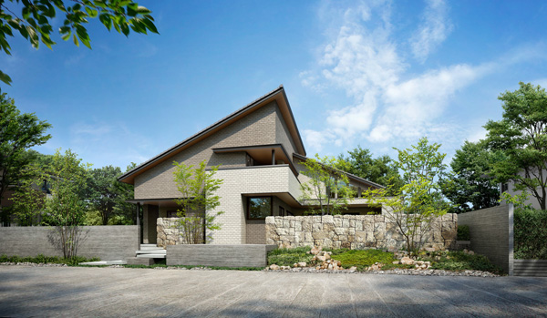 4.多様な外観バリエーション 新たに開発したオリジナルタイルにより、多様な外観を提案します。外壁や外構に整然と割り付けられたオリジナルタイルが街並みと調和し、邸宅感を演出します。