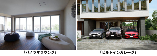(2)業(yè)界最大クラスの「大空間?大開(kāi)口」 新「skye」は、「DRF構(gòu)法」による構(gòu)造軀體の強(qiáng)度アップにより、業(yè)界最高クラスの各階天井高2m72cm、開(kāi)口幅最大8m19cmを可能にしました。 これにより高い天井高と連続開(kāi)口による開(kāi)放的な空間を?qū)g現(xiàn)する「パノラマラウンジ」や、ワイドスパンを利用した自動(dòng)車(chē)3臺(tái)分(※3)のビルトインガレージの提案も可能となるなど、お客さまの多様なニーズに対応します。 ※3.車(chē)種によります。