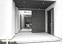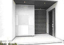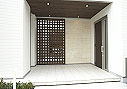 | (1) | 玄関まわり ~生活シーンのバリエーションに応える空間~ 普段は格子扉によって、仕切られている中庭が、格子扉を開くことで外部空間と一體化でき、大人數でのパーティーにも対応できる広いオープンスペースに変化します。さらに、屋外にある物入れの扉を引き出せば、扉自體が目隠しになり、回りからのプライバシーも確保できるセミオープンスペースとなり、1枚の扉で2つの機能を果たしています。お客様のおもてなしや、子どもの遊びなど、さまざまな生活シーンに応えてくれる扉の提案です。 また玄関とは別にファミリー専用玄関を確保することで、散らかりがちな玄関まわりの物の管理がしやすいよう工夫しています。 |