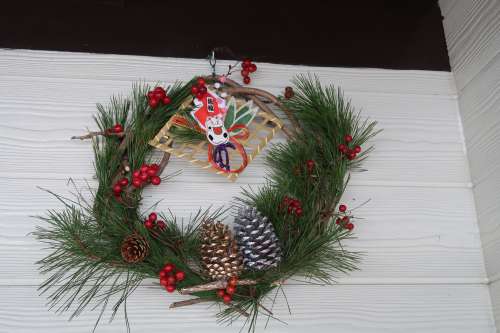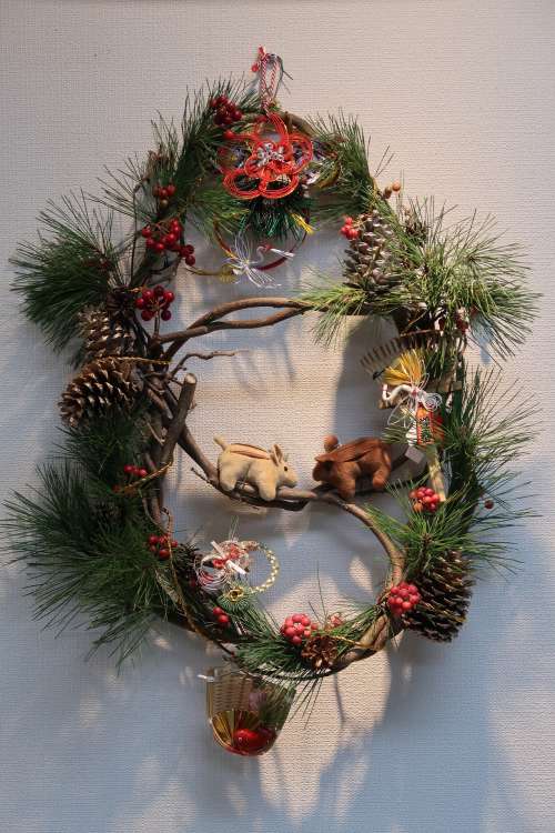 松や水引きの正月飾りなど、おめでたい正月リースです