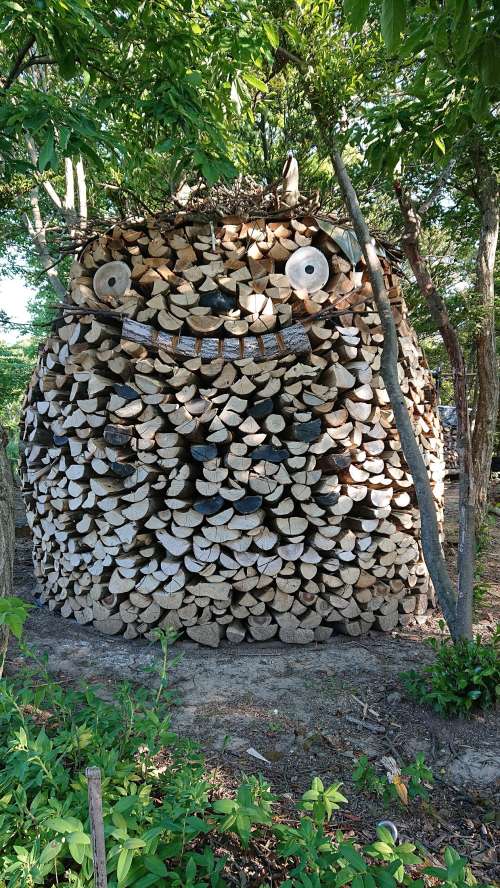 T様邸の敷地內(nèi)に薪を重ねて作った高さと直徑が約2mもある大きなトトロ。
