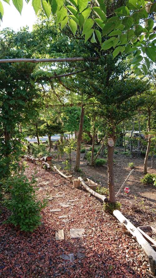 更に、庭先のご主人手作りのパーゴラをくぐり、