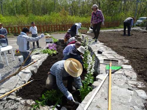 『しかべフラワープロジェクト』は2017年5月より、緑でいっぱいのリゾートを目指して、鹿部オーナーズサロン、道ひろば(中央通りの國道に面した三角地)で花壇作りを行っております
