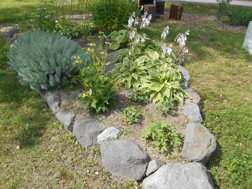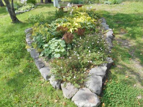 皆さんで石組み、土入れ、苗の定植を行いました