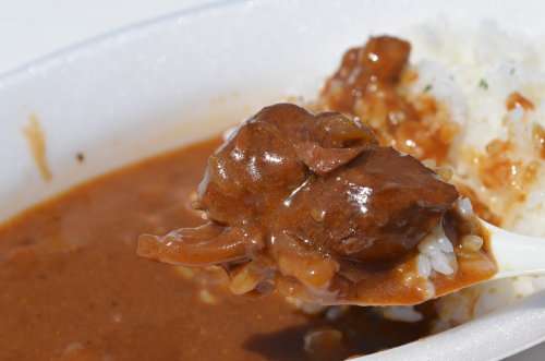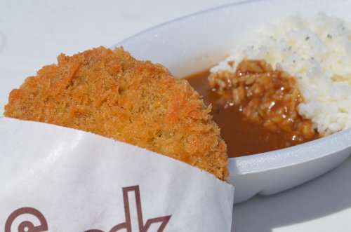 運がよければ、揚げたての牛肉メンチカツも買えます。カレーにのせて、メンチカツカレーにしても美味。柔らかいのにしつこくなく、牛肉ならではのうまみが感じられる「はこだて和?!工激い郡宋钉铯à胧长俜饯扦?。