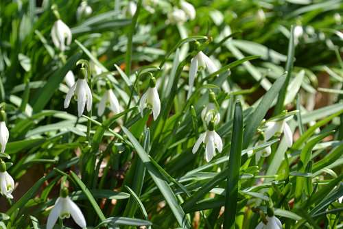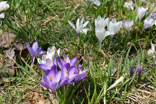 人間の目に留まるよう、目いっぱい上に向かって咲くクロッカスとは対照的に、恥ずかしげに下を向いてひっそりと咲くスノードロップの姿もちらほら。1年のうち10日間ほどしか見られない春の景色です。