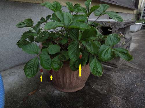 おまけカット、ワイルドストロベリー 小さいですがボチボチ実をつけています キュウリもあったのですが、もう実はつかないようで枯れかけているので 寫真には撮っていません。 2本だけ食べましたが、スーパーで買った方が安い???(笑) 割にあわなかったです いえいえ、育っていく過程を楽しめましたので十分です トマトときゅうり以外は種から植えたのですが、まあまあの出來かな?