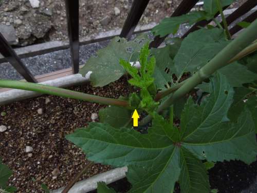 これで5個(gè)めです オクラは…蟲の方が先に葉っぱを食べています 人間がオクラを食べれるころには、オクラは無事でしょうか