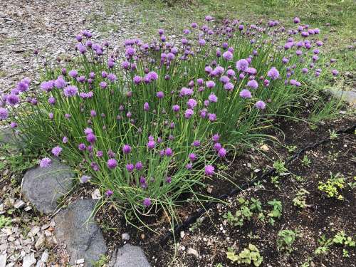 鹿部シェアサロン前ガーデンにチャイブの花が沢山咲いてきました