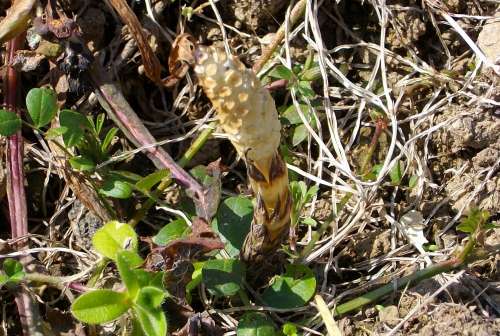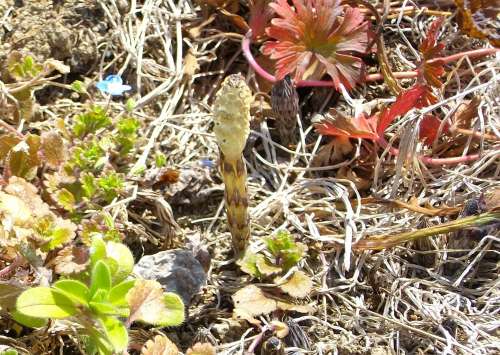 ここリゾートの空き地を覘いて見るとつくしの子がチョット顔を 出していた