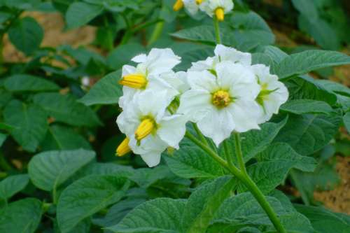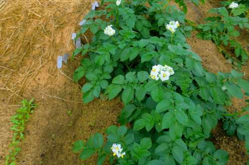 お盆に植え付けた“秋ジャガイモ”にようやく花が咲いた。