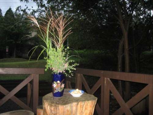 暑さも一段落した九月。ここ阿蘇では蕎麥の花が満開を迎えています。 今ではすっかり見慣れた一面真っ白に広がるこの風景。 秋が更に深まる頃、お店に新蕎麥として登場し、あちらこちらで目にする 『そば処』の文字が通りかかる人の食欲を掻き立てます。 また、阿蘇の稲刈りは霜が降りる前の九月にほとんど終えてしまいます。 今年もたわわに実った黃金色の稲穂が刈り入れを待つかのように重そうに 風に揺れていました。 澄んだ空気と豊かな水に育まれた贅沢な新米。 ここはほんとうに美味しい誘惑が多いところなのです。 今宵は十五夜、中秋の名月。ふと思いついて散歩帰りに道端のすすきを 採ってきました。 お月さまにお供えをするなんて子どもの頃以來。 昔、母が作っていたのを思い出しながら、農家の方に頂いただんご粉で お団子作りに挑戦。あまり美味しそうには見えませんが???。 都會のように街の燈りなどないひっそりとした暗闇を、眩しいほどに 照らす満月を眺めながら、こんな風流を楽しむ気になれるのも自然に恵まれた この地だからこそかも知れません。 月を見ながらデッキでちょっと一杯なんていうのもまた灑落ていませんか? ※上記寫真は全て平成23年9月撮影