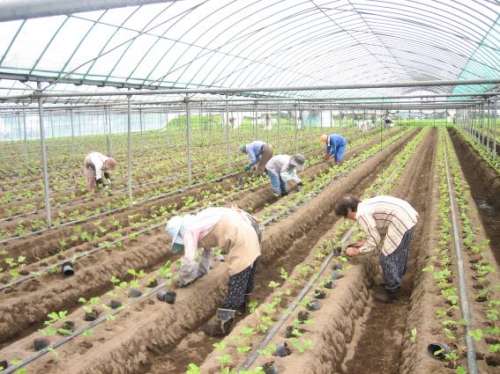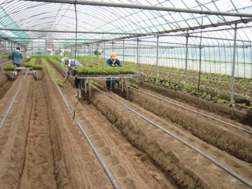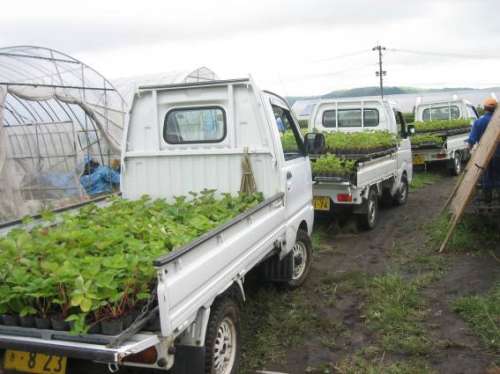置いていきます。広いハウス內を隈なく歩いて全ての苗を配り終えたのは