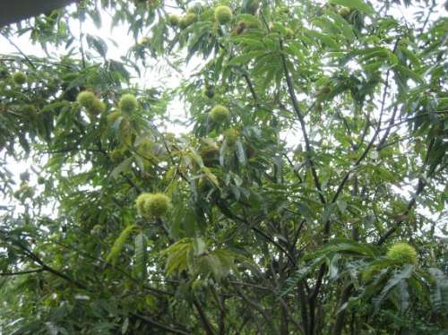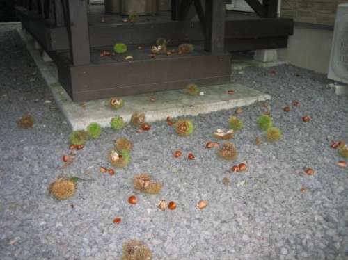朝に夕にドサッと音を立てて落ちてくる栗の実のおかげで家の周りは