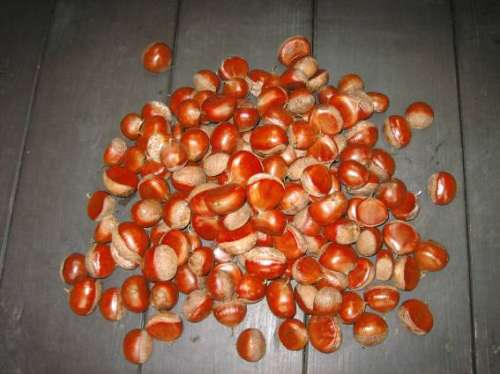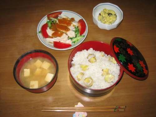 今朝拾い集めたのはこれだけ。早速、夜は栗ご飯に。