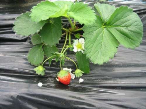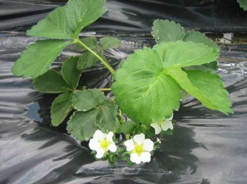 9月に植えたイチゴに花芽が出てきました。ハウスの中ではミツバチが盛んに