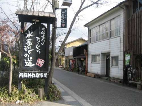 神社を少し過ぎたところで、水基巡り散策マップを手にした観光客に水基の