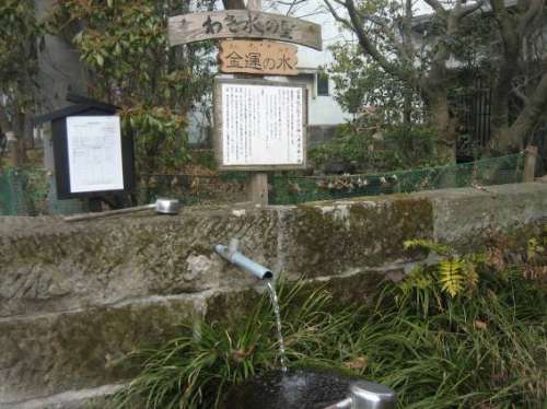 銀行の敷地內にある『金運の水』。人気の水基の一つになっているのは、