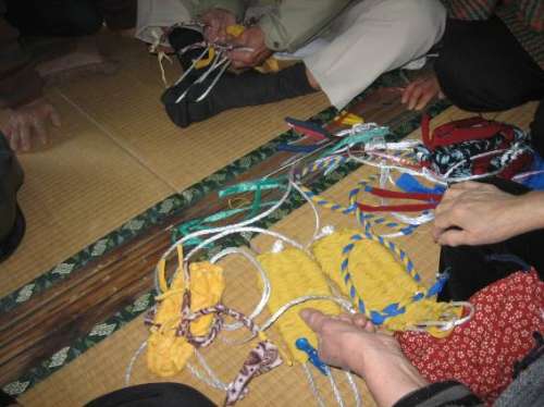 ビニール紐や竹の皮で作ったりっぱな草履に感心するばかり。