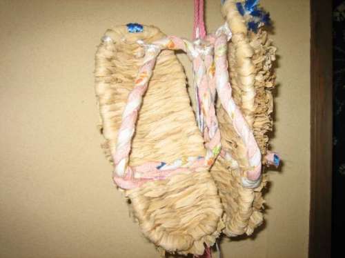 何の道具もなしに、要らなくなった布と藁でこんなものを作ってしまうなんて、