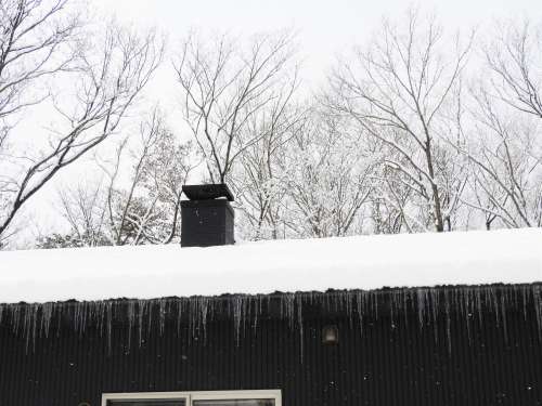 白い道がそこかしこで見られるような天候のときは、積雪の多い年と言えるでしょう。屋根に積もった雪や軒のつららも、溶ける暇もなく、再度の降雪?寒波によって更に高さを増し、長くなっていきます。