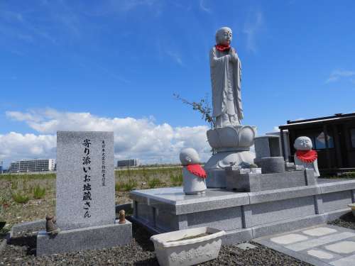 復興公園からちょっと離れた一角に、お地蔵様がいらっしゃることに気がつきました。「寄り添いお地蔵さん」とあります。この一角は、さきほどの芳名碑をいかにも見守っているような位置にあります。大災害により、心ならずもその生命を絶たれてしまった多數の方々の無念を、寄り添い鎮め癒やしてくださっているのだなと、強く感じました。お地蔵様は昔から優しいお顔で見守ってくださっていますが、近年になって建立されるお地蔵様は、優しさに加えて可愛らしさも加味されているような気がします。お地蔵様が癒やしてくださる相手には、悲しいことに子どもたちもたくさんいるのです。きっと一緒に遊んでくださっているのでしょう。