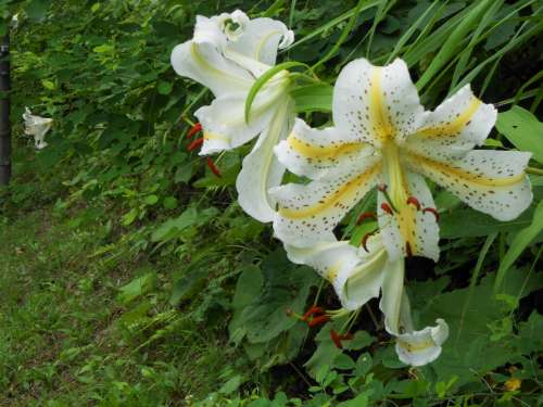 そんな人間サマの思惑などおかまいなしに、今年もたくさんの「夏」がやってきて私たちを楽しませてくれています。目につくままに、夏を探しにでかけてみましょう。夏の花の王様としての貫祿十分、ヤマユリの花です。蔵王の我が家の敷地內に咲く、とびきり美しい花を寫真に撮りました。豪華な花であり、また目をつむっていてもすぐにそれと分かるその香りはゴージャスそのものです。しかし、その豪華さは長くは続きません。あっという間に花の時期は終わってしまうので、意識して、さらに心して堪能せねばなりません。