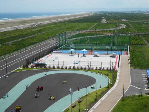 これは余談ですが、このサイクルスポーツセンター內には、オリンピックでスポーツとしての知名度が上がった、スケートボード競技用のコースが整備されていました。今後は、若い人たちが安全で楽しく練習できるように、こういった設備がたくさん整備されればいいなと思います。この他に1周4キロの海辺を走る自転車コース、フットサル場などもあるそうですよ。海風を受けたサイクリング、気持ちよさそうですね。