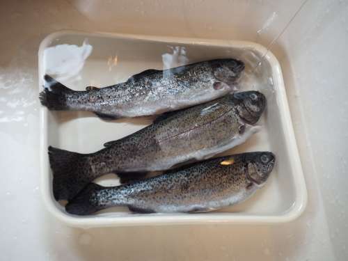 渓流魚の燻製は、これまでは持ち帰るまで時間がかかるため現地で捌いて塩漬けにして新聞紙に包んで持ち帰って作っていたのだが、6月1日(月)の試し釣りで釣ったニジマスは新鮮なまま持ち帰りすぐ処理できたのでソミュール法で作ることにした。