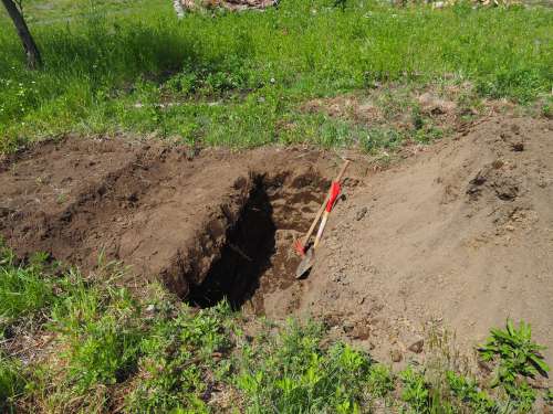 敷地の境界は牧草に加えてトウヒの根が縦橫無盡に走っていてただでさえ手ごわいシートをさらに強固にしている。そのため、いろいろな道具を試してみたが、ツルハシ以外では太刀打ちできないことが判明した。