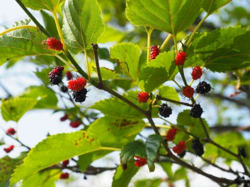 しばらくしてその他の2本に見覚えのある特徴的な実がついたことからその正體が明らかとなった。ヤマグワである。特に南側の3mの木の実つきがすばらしい上に、甘味も酸味も多く味が濃く、手を紫に染めて庭仕事の度につまんでは頬張っていた。