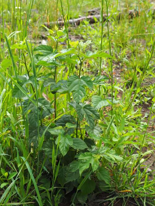 庭のあちこちに生えている、実生と思われるヤマグワの幼木。環境に適しているためか成長が早いようで放っておくとすぐ大きくなりそうだ。成木と異なり分裂葉が目立つので容易に見分けられる。かなり広範囲に広がっているのは鳥が運んだためだろうか。