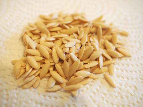 採取した四葉キュウリの種。見た目は大丈夫そうである、數としてはこの量で充分であるのだが、遺伝情報の多様性の確保のため、この後、今回種を採取したキュウリとは異なる2株からも種を採取する予定である。