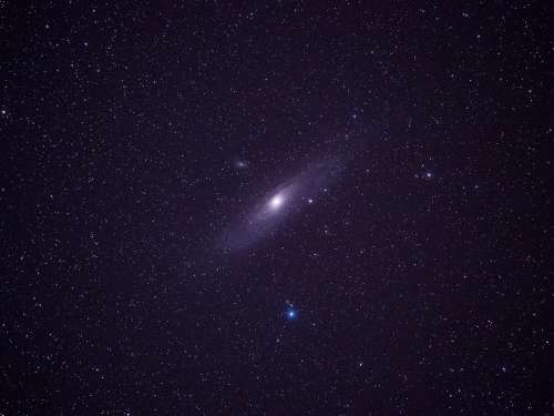 M31(アンドロメダ大星雲)。暗黒帯やM110も確認できる。150mm(300mm相當)f/2.8 ISO-3200 60秒露出。