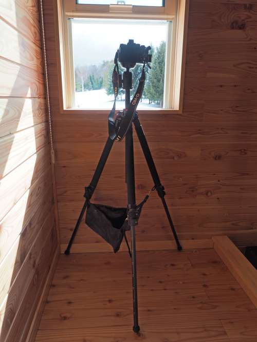 2階の撮影場所。まどが小さいので窓を開けても冷気の侵入は気になるほどではない。広角レンズは使えないが標準以上の長焦點なら窓枠なども寫らずに済む。ここに赤道儀を置いて追尾撮影ができたら楽なことこの上ないが、さすがにそれはズボラが過ぎるというものか...