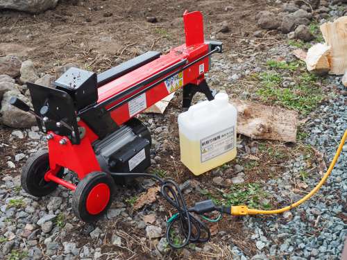 ついに購入してしまった電動薪割り機。重量は48kgもあって移動には一苦労だがそれでもエンジン式よりは隨分軽い。オイルを別途購入して注入しなければならなかったり、スイッチの入れ方がわからなかったりと動かすまでに少し手間取った。