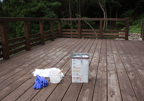 1.    ウッドデッキはほうきで掃き、塗料がついてはいけない箇所は
