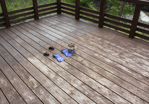 なお、我が家では念のため、作業前日にウッドデッキを水洗いし、