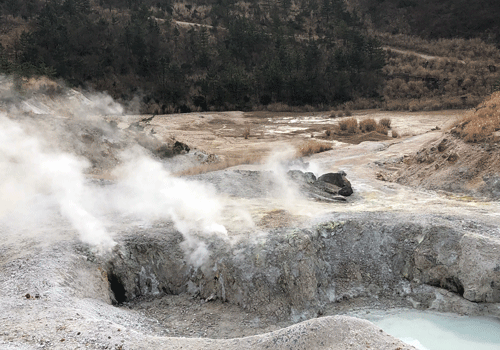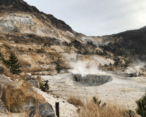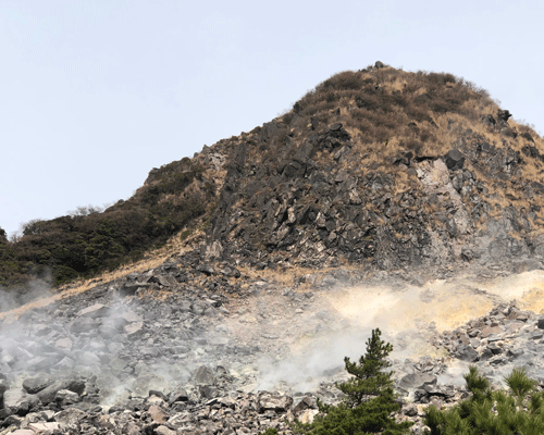 十分に溫まった後、受付で火口見學料金200円を払って、 湯場から5分程度で、もくもくと蒸気が沸き上がる地獄を見て きました。(湯上りの5分はキツイ???)