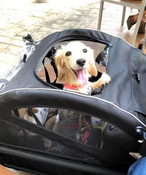 でもって、我々以上に暑かったのか、ペットカートの天窓から