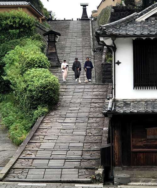杵築の城下町の散策では、事前に著物に著替えての散策です。